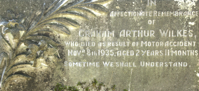 Graham Wilkes died as the result of a motor accident aged 2 years and 11 months.